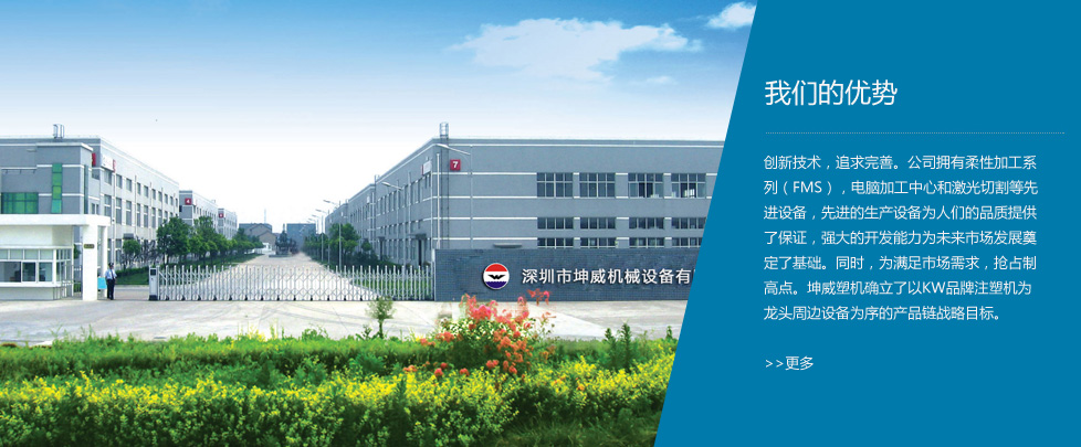 坤威公司是一家專業開發、設計、制造塑膠成型機的企業。一九九二年十月,在中國大陸成立坤威塑機械廠,公司十余年的穩定發展,坤威KINWEI品牌知名度不斷提升,得到了很多企業集團公司的認可和贊譽。二零一二年,為了滿足不斷拓展的市場需要,公司引進德國先進的技術設備在東莞成立分公司并擴大了工廠規模,位于東莞大嶺山鎮107國道邊,交通十分便利,我們誠邀廣大新老客戶蒞臨商洽! 技術創新,追求完善。我們公司生產的注塑機等設備廣泛用于:汽車作業、醫療器具業、刀具、潔具、玩具、日用品、嬰兒用品、電子接插件、光學鏡片、眼鏡架、背光板、手機機芯、齒輪、鞋底、色板、軟管、硬管等行業。經過十幾年的發展,坤威系列注塑機以”安全、快速、穩定、耐用”而著稱于業界。   公司堅持“以人為本,以質取勝”的經營方針,我們擁有一支具有現代化企業理念的高素質團隊,凝聚了一批富有理想充滿活力的戰略伙伴,匯集了眾多技術精英。以“團結、奮進、求實、創新”的精神,秉承“品質是公司現在和未來的決戰場”,我們愿意繼續竭誠為各新老合作客商提供先進質優的產品和滿意完善的售后服務!